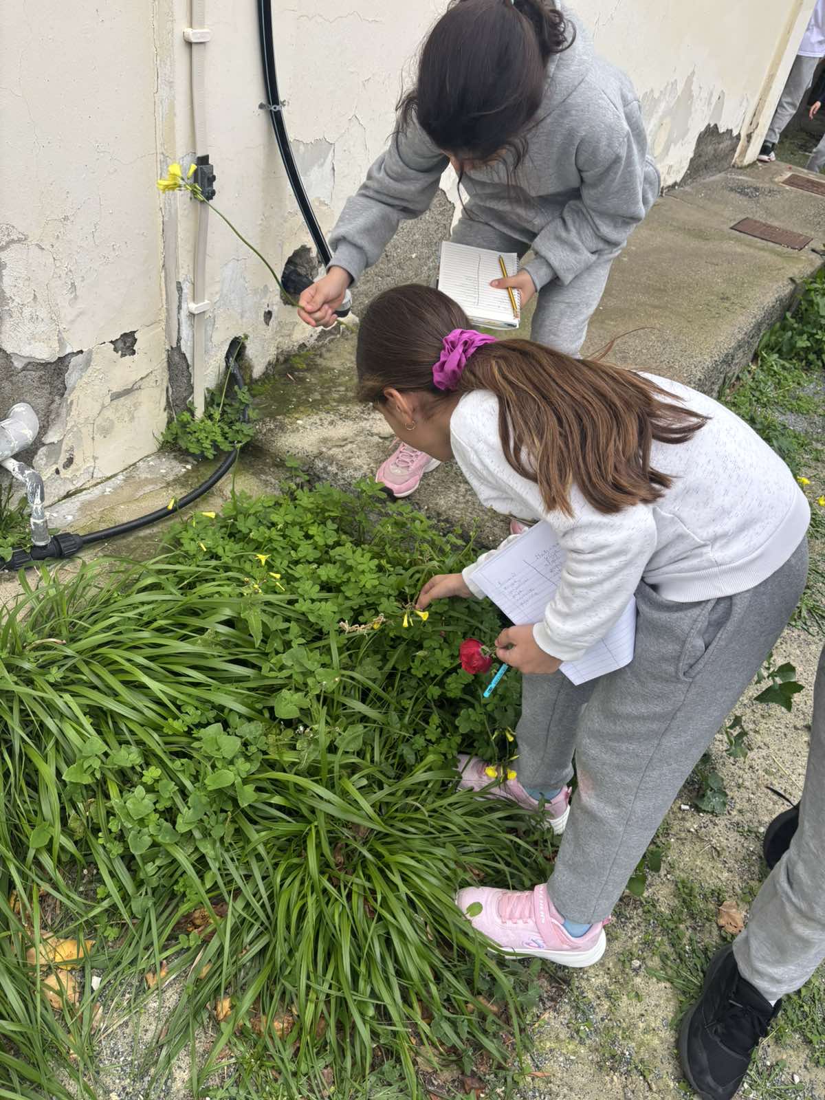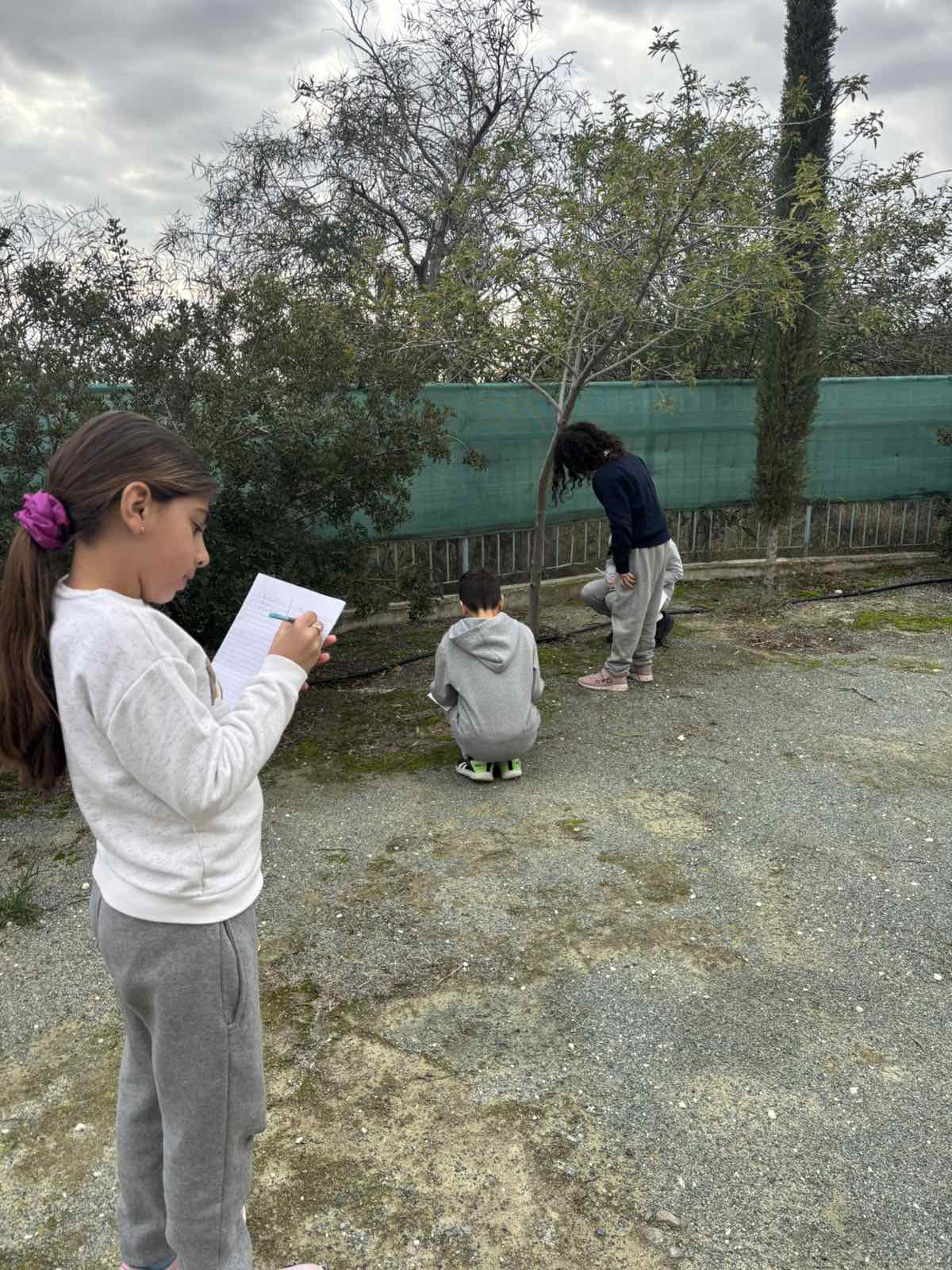 | Στα πλαίσια της ενότητας «Φυσικό Περιβάλλον», οι μαθητές βγαίνουν έξω στην αυλή του σχολείου για να εντοπίσουν βιοτικά και αβιοτικά στοιχεία. |