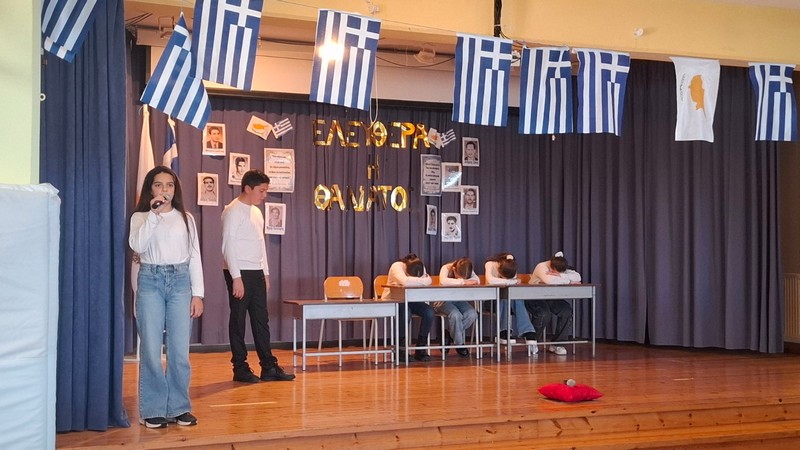 Εορτασμός για την Εθνική Επέτειο της 1ης ΑπριλίουΣε κλίμα σεβασμού και συγκίνησης πραγματοποιήθηκε στο σχολείο μας ο εορτασμός της επετείου της 1ης Απριλίου. Οι μαθητές και οι μαθήτριές μας συμμετείχαν με υπευθυνότητα και ευαισθησία στον ενδοσχολικό εορτασμό, τιμώντας τους αγώνες και τις θυσίες του παρελθόντος. Μέσα από τη συμμετοχή τους, ανέδειξαν τη σημασία της ιστορικής μνήμης και των αξιών που εξακολουθούν να καθοδηγούν τις νέες γενιές. |